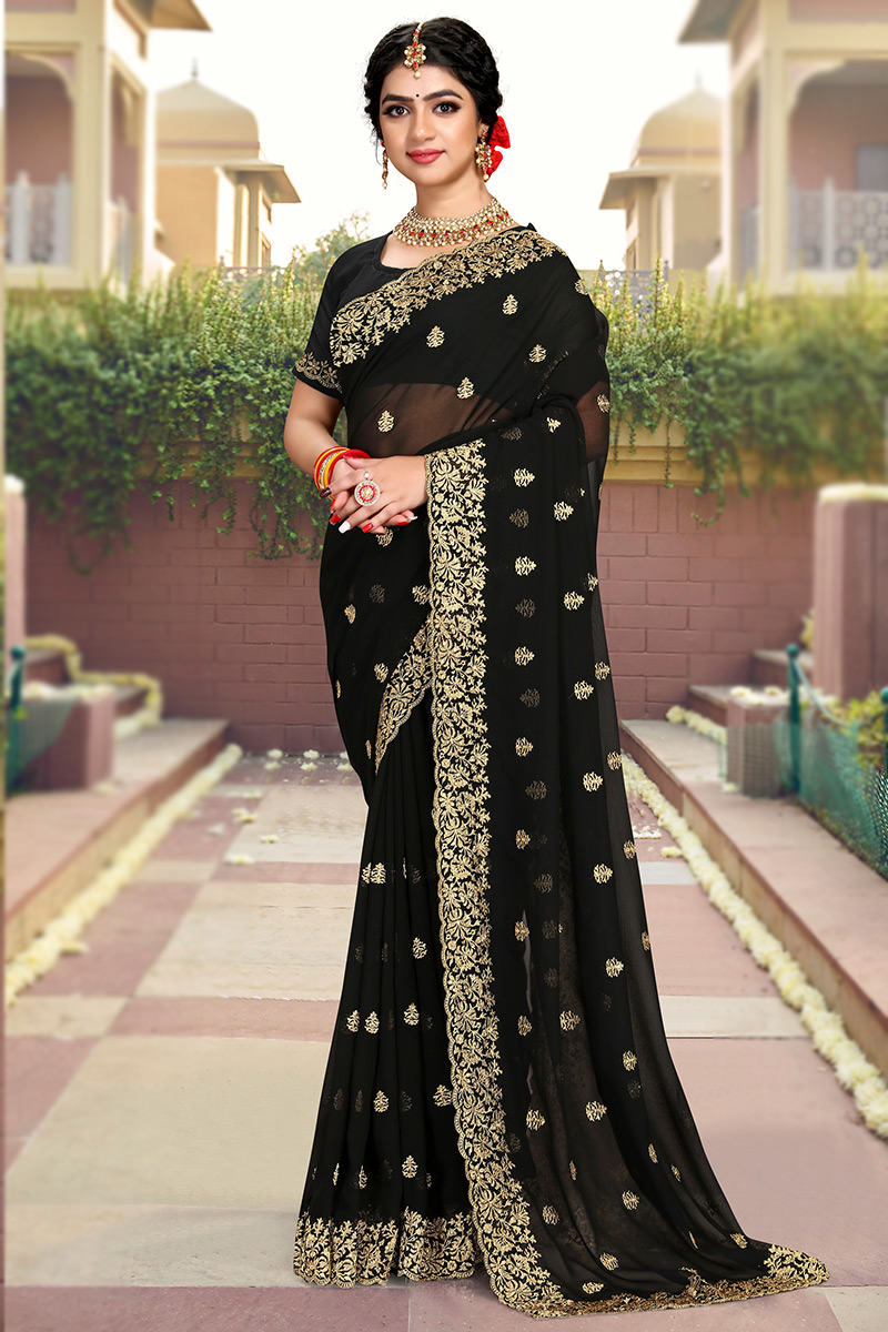 Black Georgette Saree for Party Wear with Zari embroidery