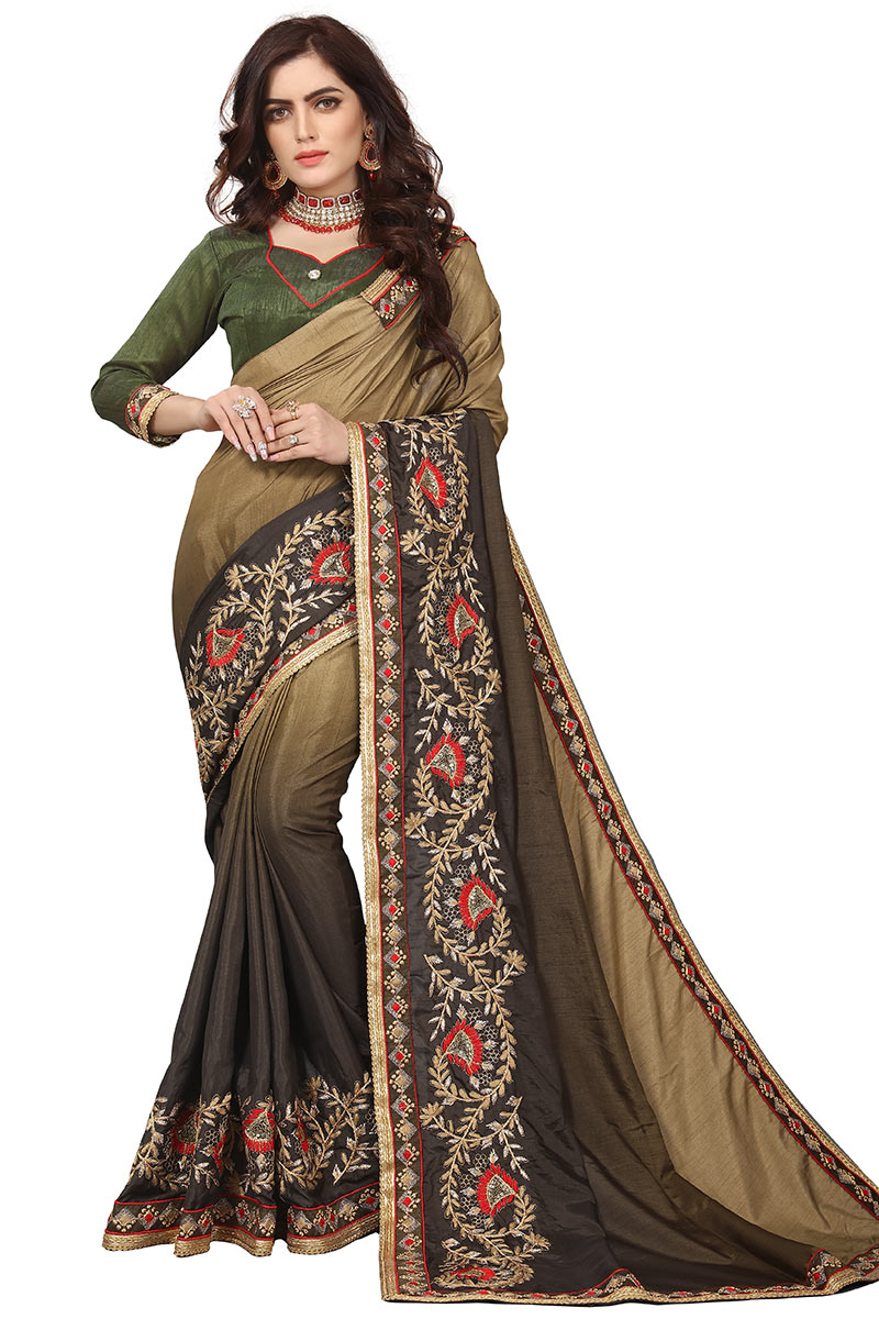 Brown Silk Saree for Party Wear with Cutdana embroidery