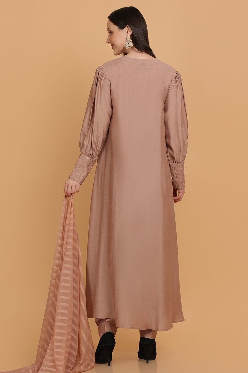 Linen Dusty Peach Beads Embroidered Designer Trouser Salwar Kameez for Wedding