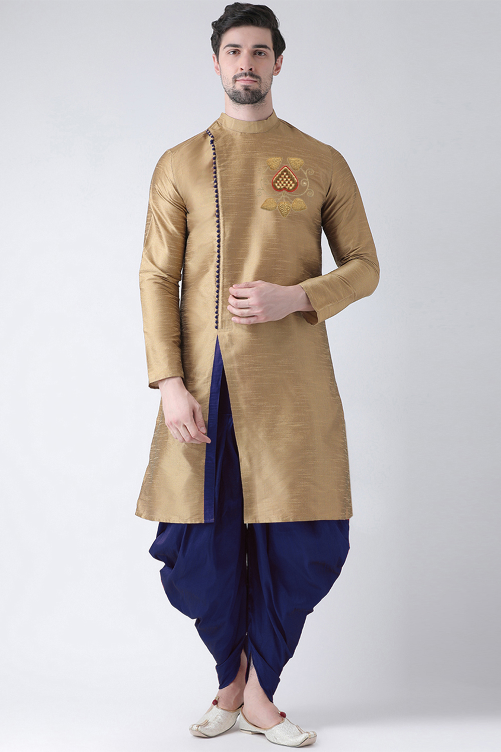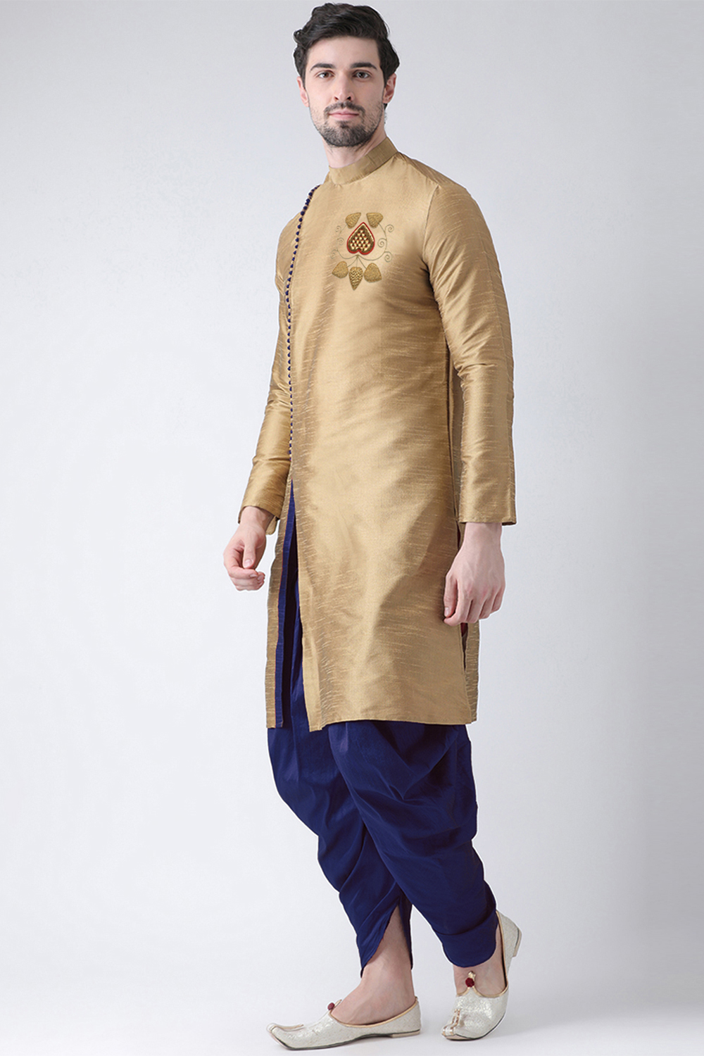 Traditional Oat Beige Kurta Dhoti in Dupion Silk Fabric