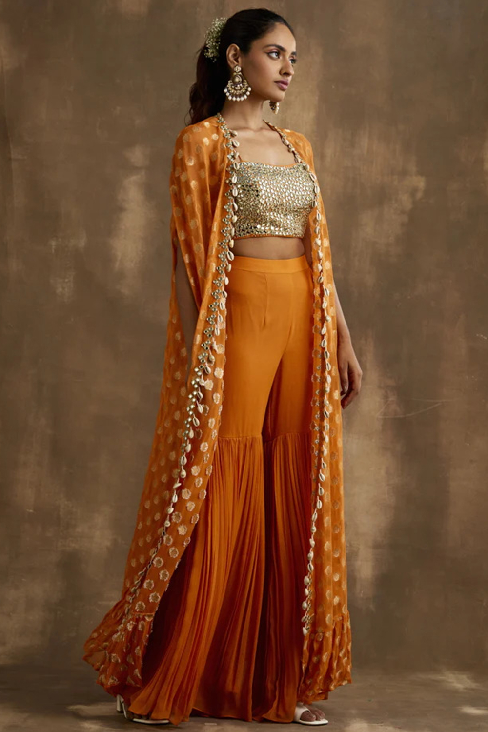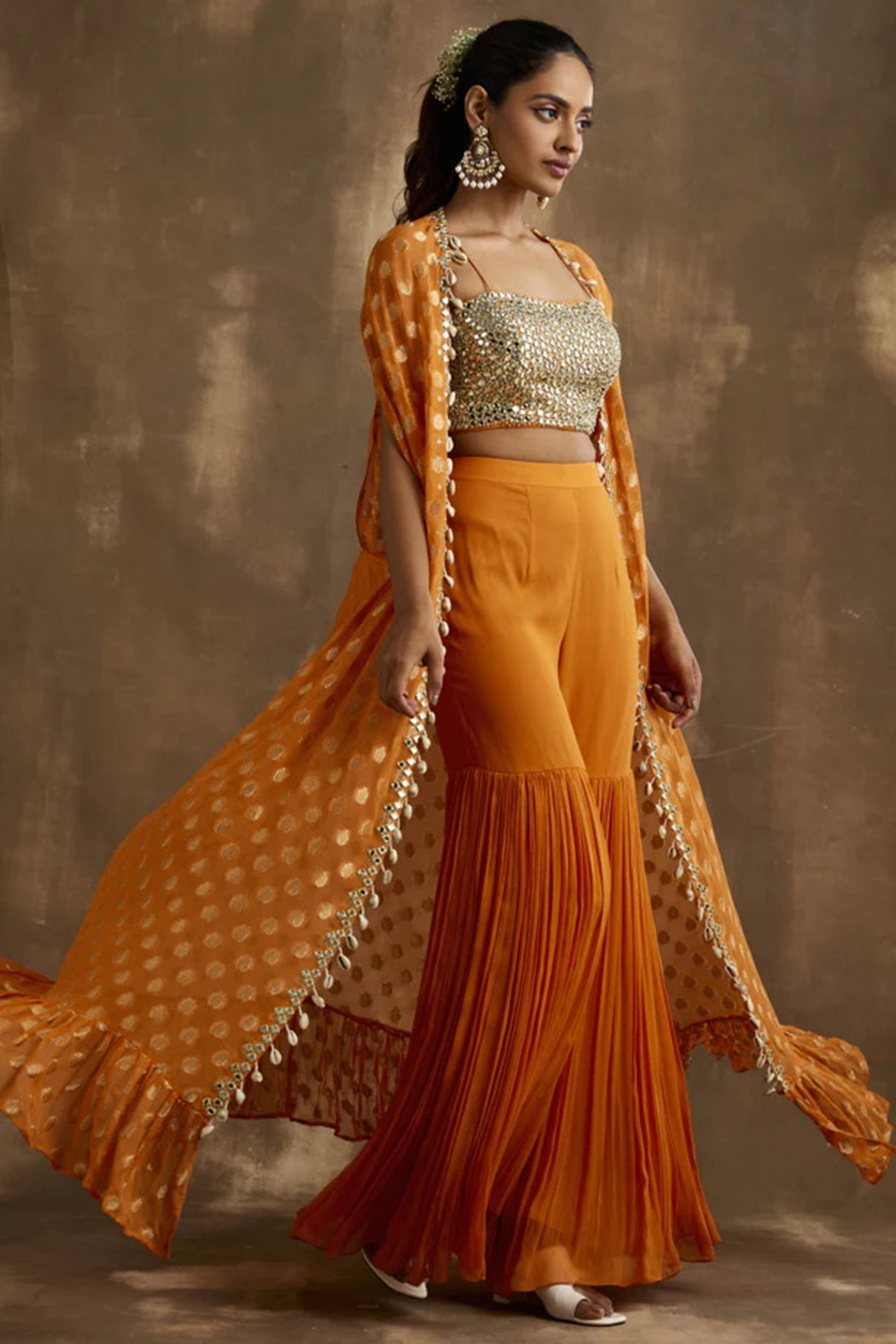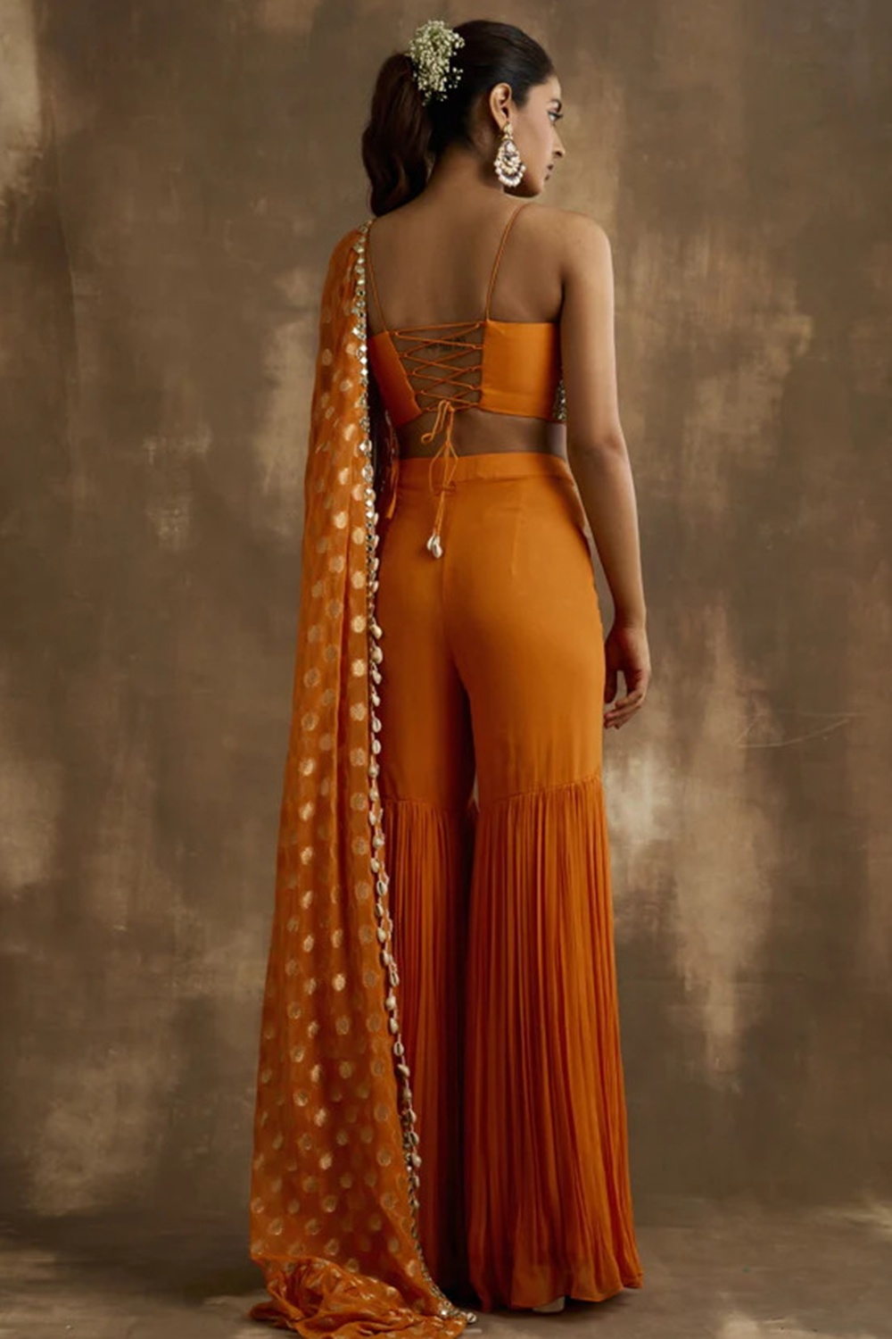 Orange Georgette Embroidered Top With Sharara for Cockatail And Eid