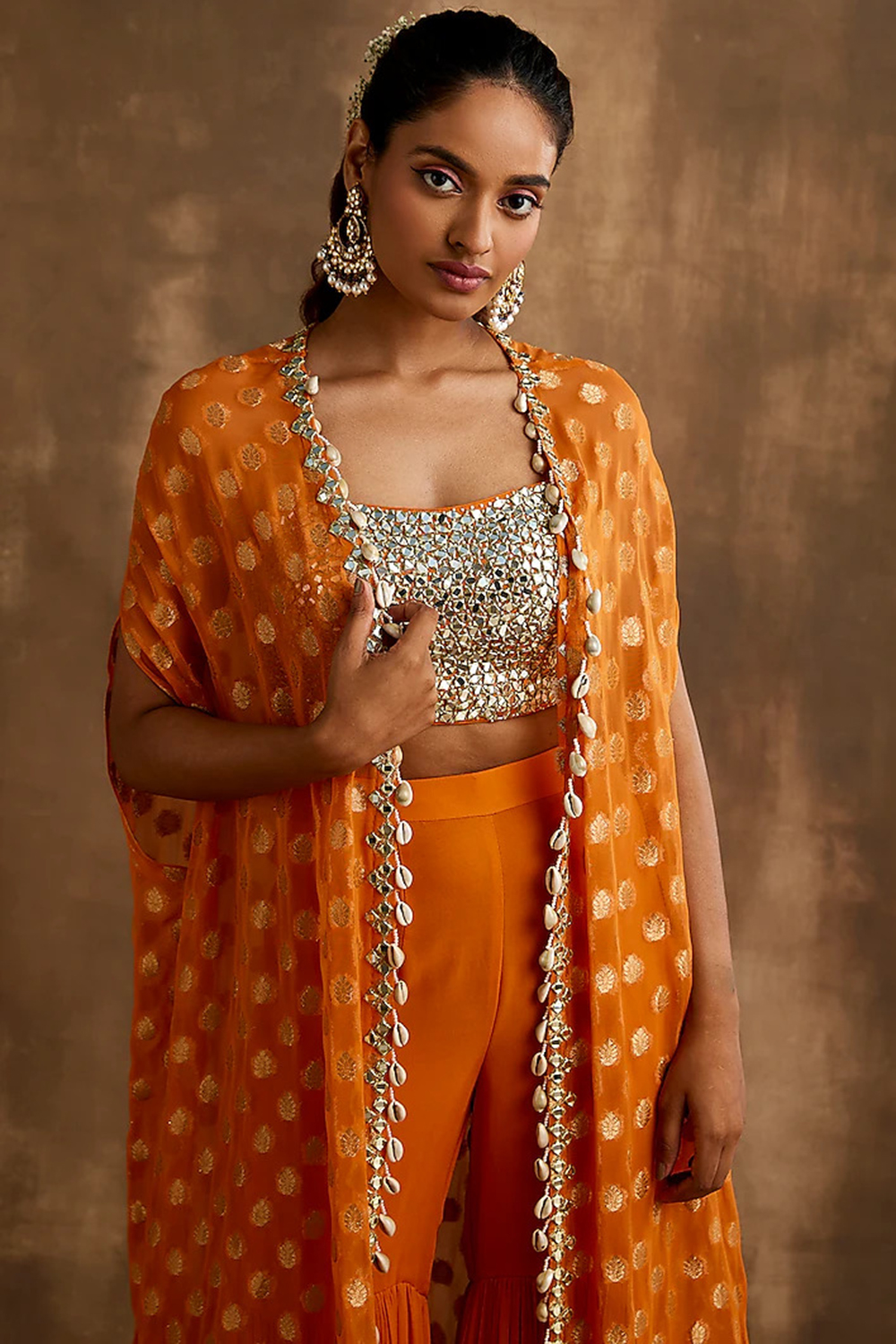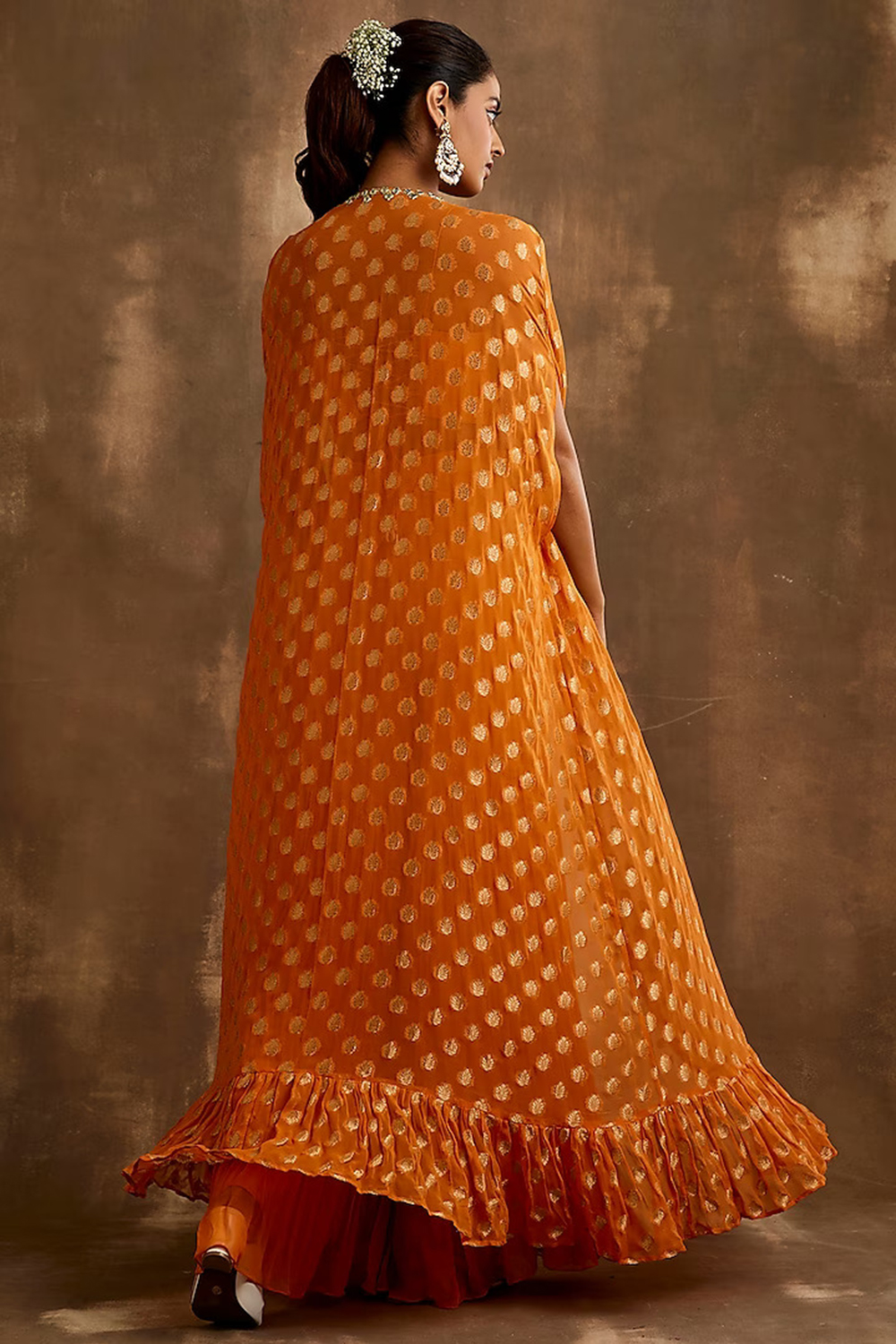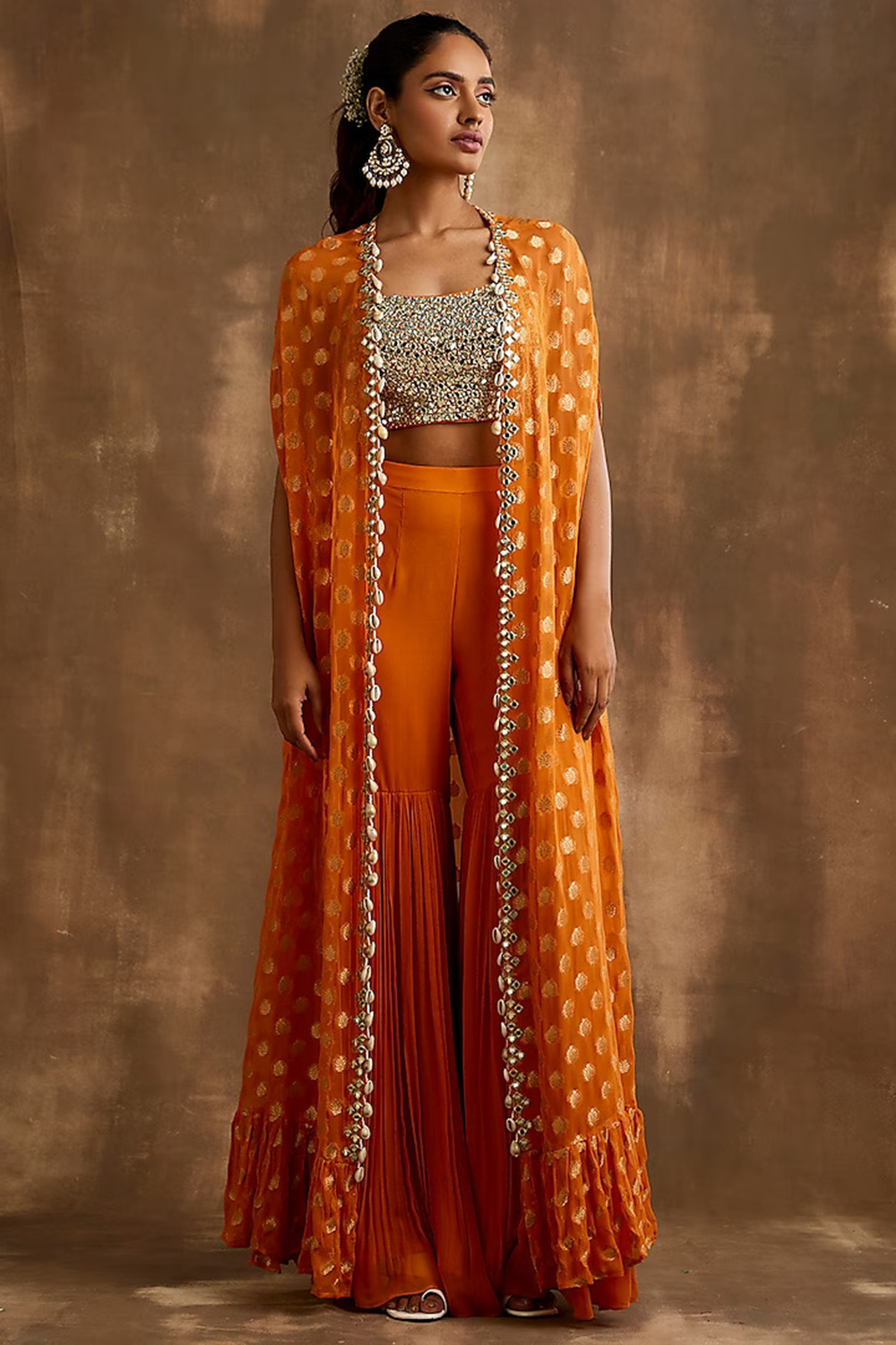 Orange Georgette Embroidered Top With Sharara for Cockatail And Eid