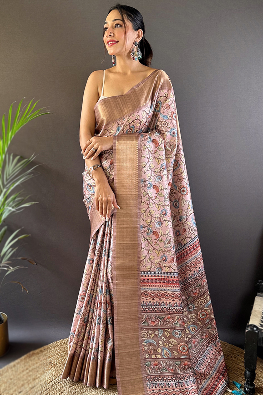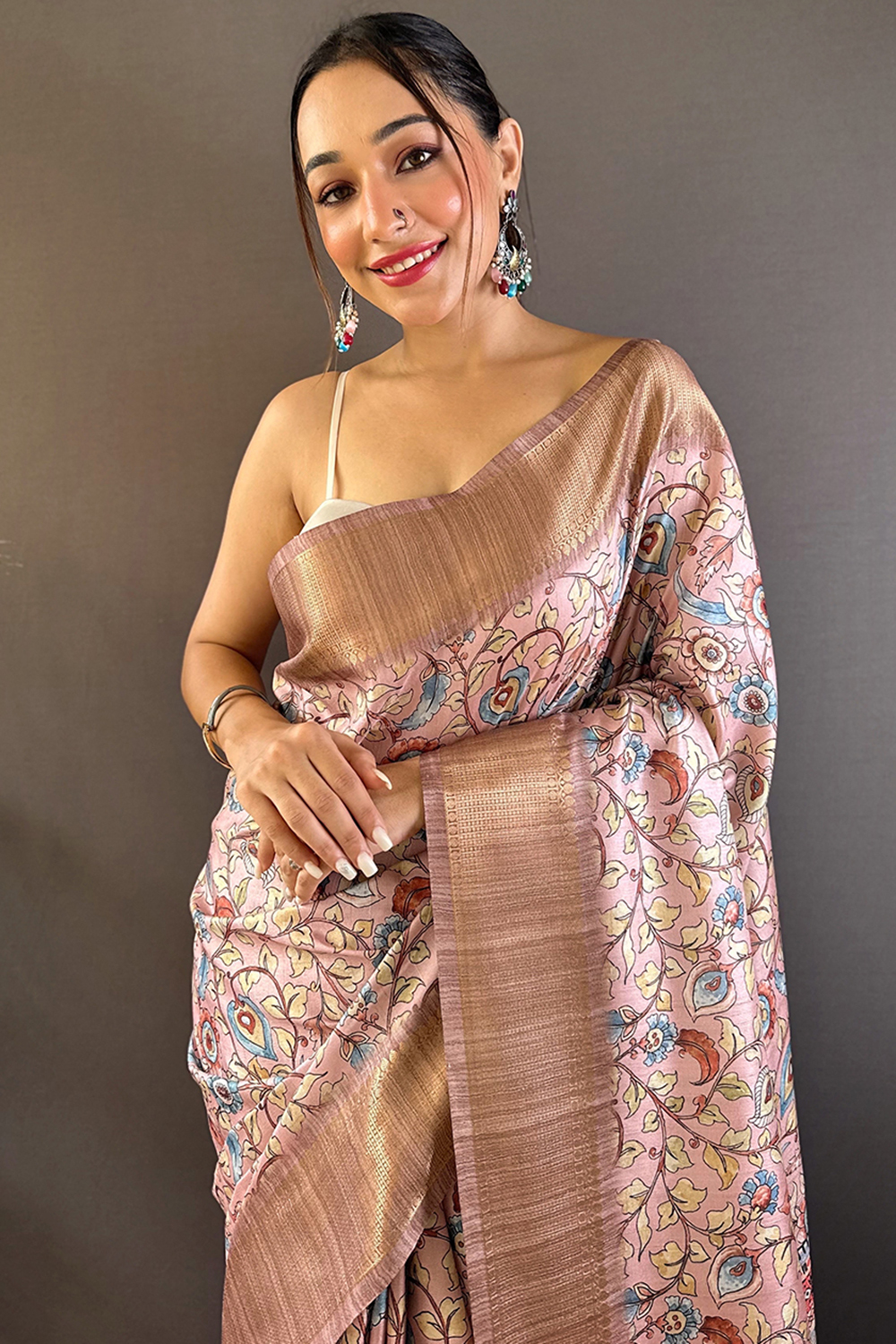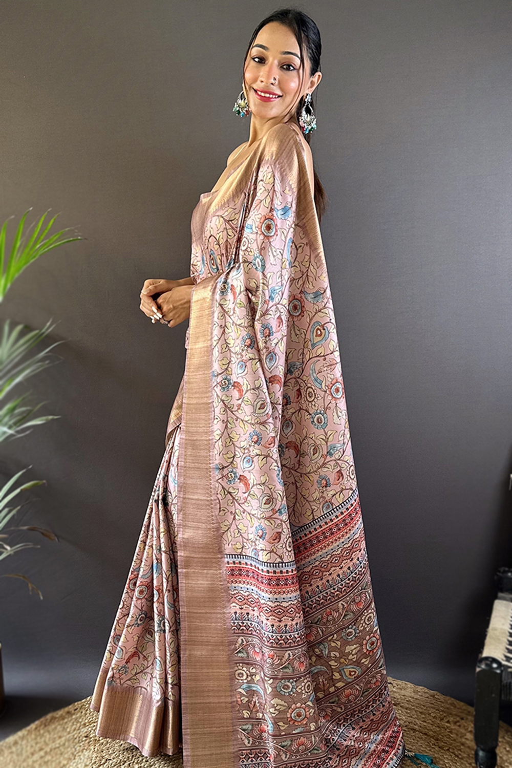 Pastel Pink Tussar Silk Printed Light Weight Saree